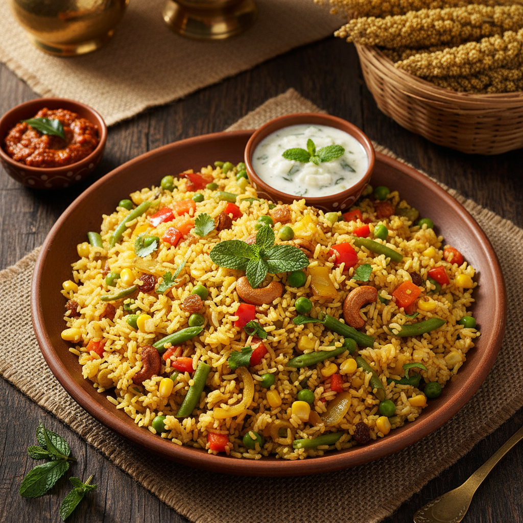 కొర్రలు (ఫాక్స్‌టైల్ మిల్లెట్) ఒకప్పటి మన పూర్వీకుల ప్రధాన ఆహారం. బియ్యానికి చక్కని ప్రత్యామ్నాయంగా ఉపయోగపడే ఈ చిరుధాన్యం ఫైబర్, ఐరన్ మరియు విటమిన్లతో నిండి ఉంటుంది. జీర్ణక్రియకు సహాయపడి, రక్తంలో చక్కెర స్థాయిలను నియంత్రిస్తుంది. ఈ రుచికరమైన వెజిటబుల్ పులావ్‌తో కొర్రలను మీ రోజువారీ ఆహారంలో చేర్చుకోండి, ఆరోగ్యాన్ని ఆస్వాదించండి.