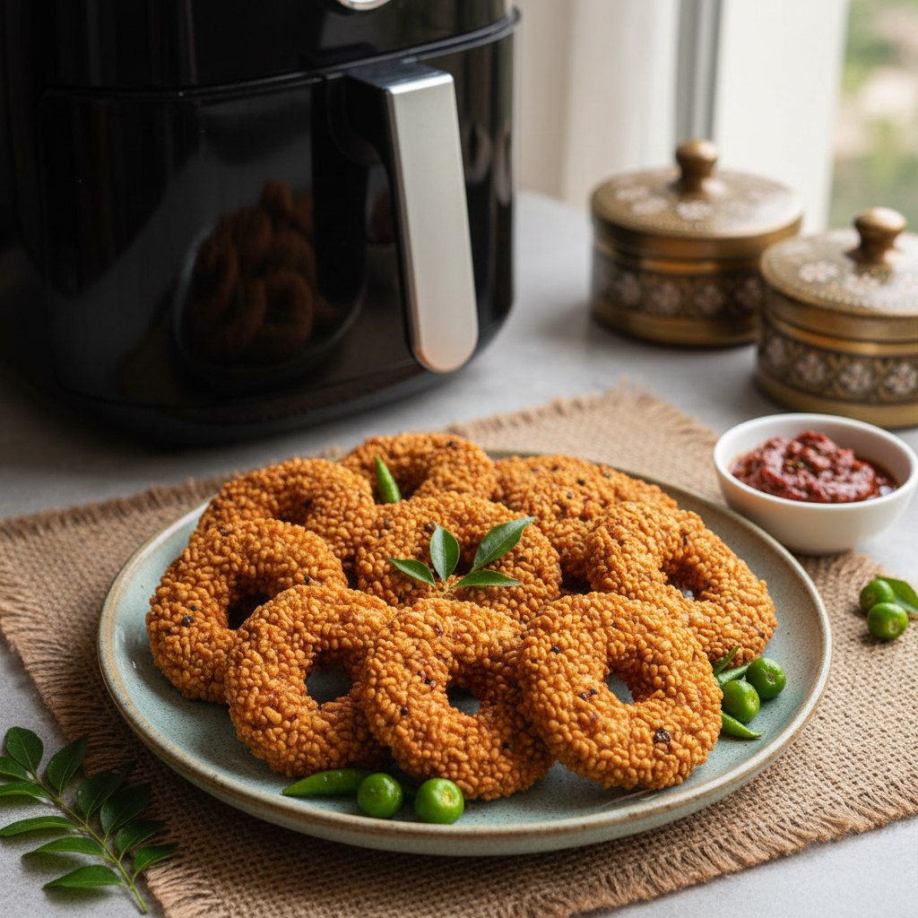 ఎయిర్ ఫ్రైయర్‌లో ఆరోగ్యకరమైన, కరకరలాడే తెలుగు అల్పాహారాలు ఇప్పుడు సులభం! తక్కువ నూనెతో సంప్రదాయ వంటకాలను రుచి చూడండి.