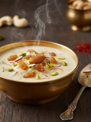 పాయసం (ఖీర్) అనేది ప్రతి పండుగలో చేసే తీపి వంటకం. పాలు, బియ్యం, బెల్లం/చక్కెరతో చేసే ఈ వంటకం తియ్యదనానికి చిహ్నం. పదార్థాలు: తయారీ విధానం: Cooking Time: 40 నిమిషాలు Servings: 5 Difficulty: సులభం Nutrition Info (ప్రతి …
